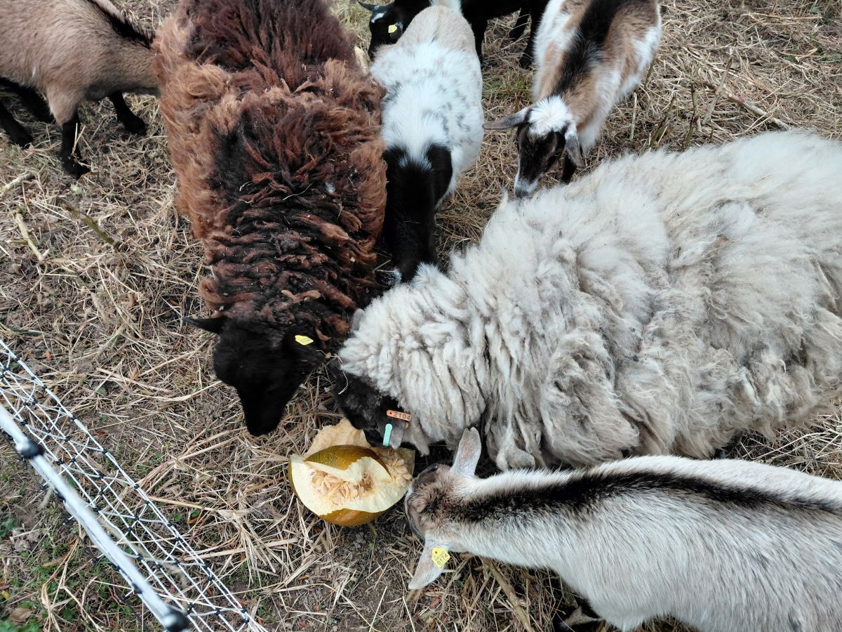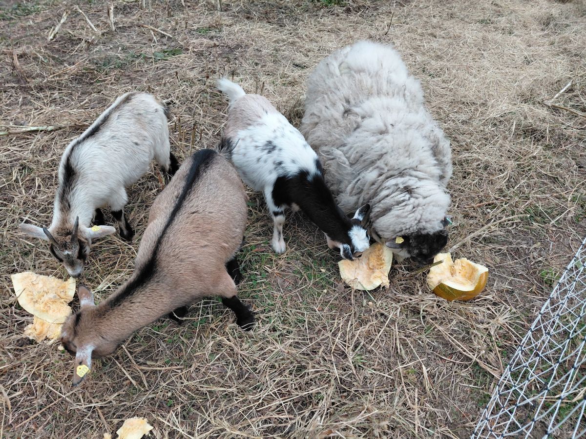 Jeff brought the pumpkins into the paddock and smashed them with his boot, opening them up for the SGL to eat the seeds and fruit.